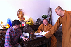 梅先生同少林寺方丈釋永信大師、少林藥局局長(zhǎng)釋延琳大法師研討《百花散》的神奇功效
