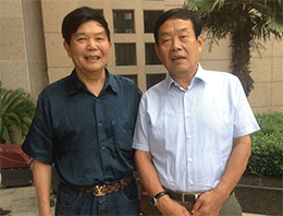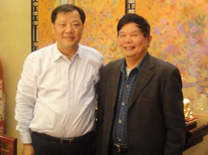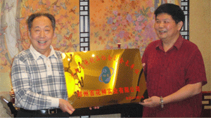 時(shí)任河南省人民政府省長(zhǎng)郭庚茂先生(左)與臺(tái)州商會(huì)支部書記、《百花散》傳人梅安富先生合影